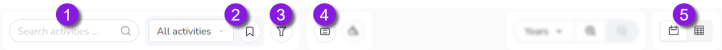 Activity Search: Search for activities by name. Type in a keyword to filter the activity hierarchy to display only activities whose name contains the keyword.