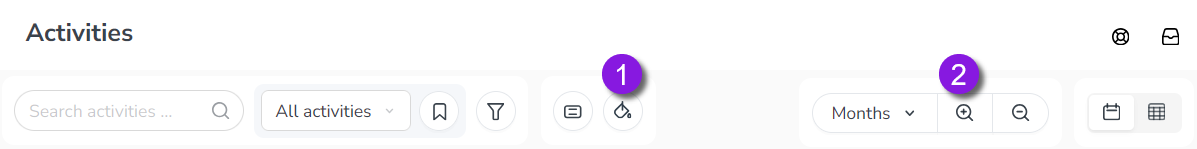 Select Color Coding: Color-code the activity bars in the timeline based on a selected attribute to make it easier to tell activities apart at a glance. Select an attribute to color the activity bars based on which value the activity has set for that attribute.