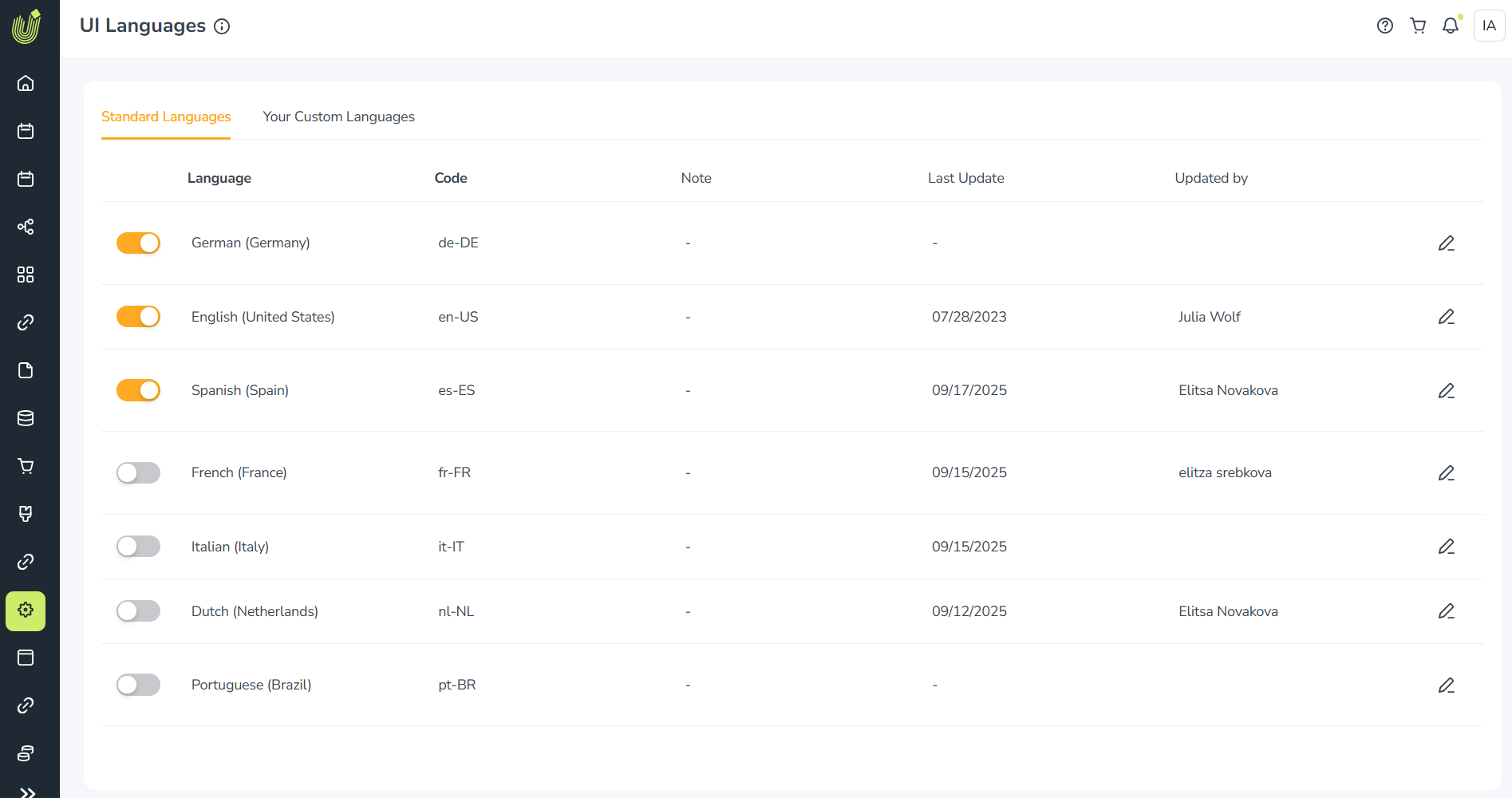 Previous location: Administration > Overview > Look & Feel > UI Languages