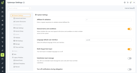 What's on this page: General system settings and module-specific settings for Uptempo Work modules (including legacy modules).