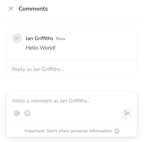 Mention someone: Type "@" followed by another user's name to mention them. When you mention someone, they'll be notified of your comment in their notification area.